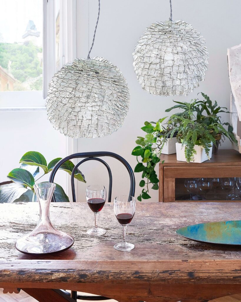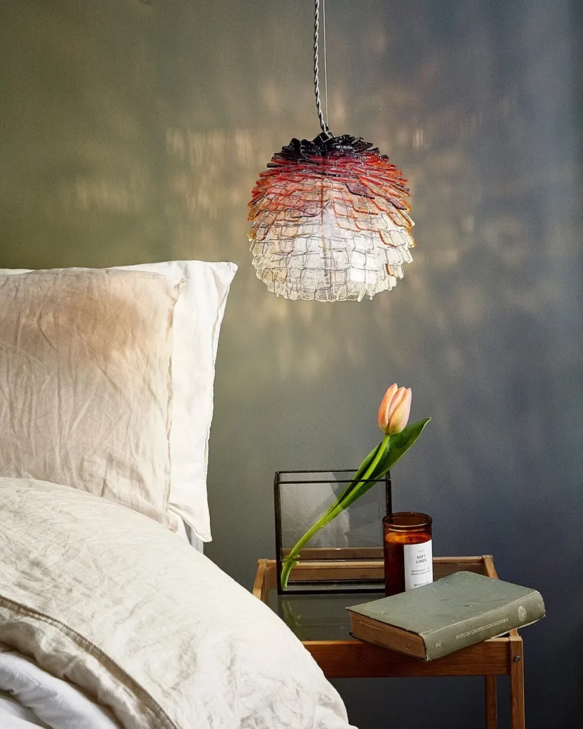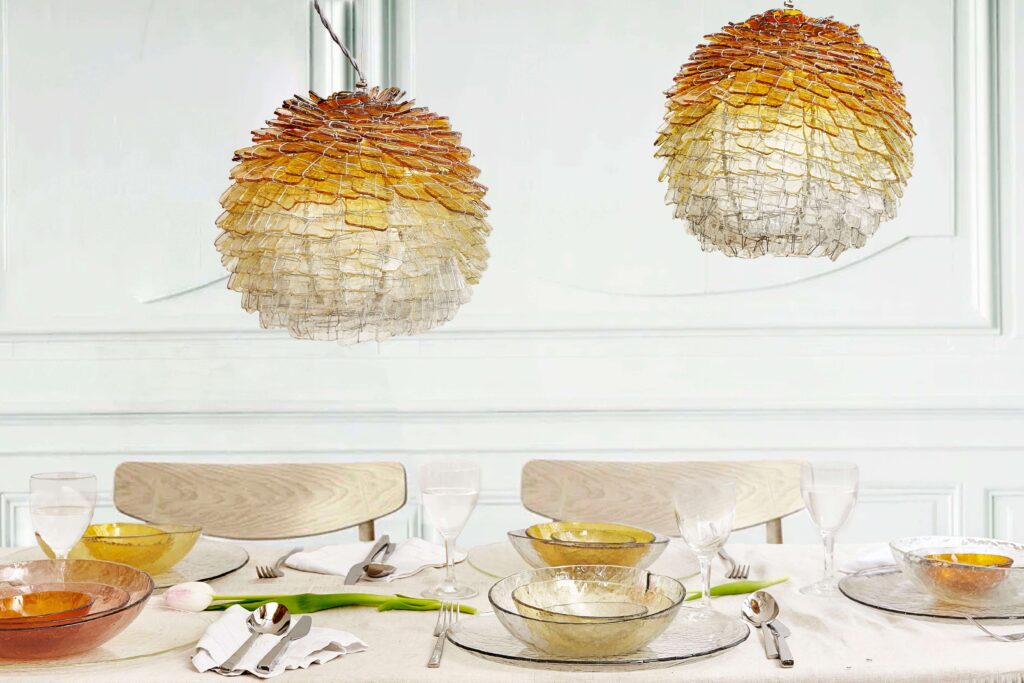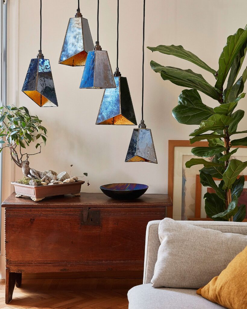 Ogni pezzo è realizzato a mano e pensato per creare atmosfera: non semplici corpi illuminanti, ma presenze che dialogano con lo spazio e con la luce che le attraversa.