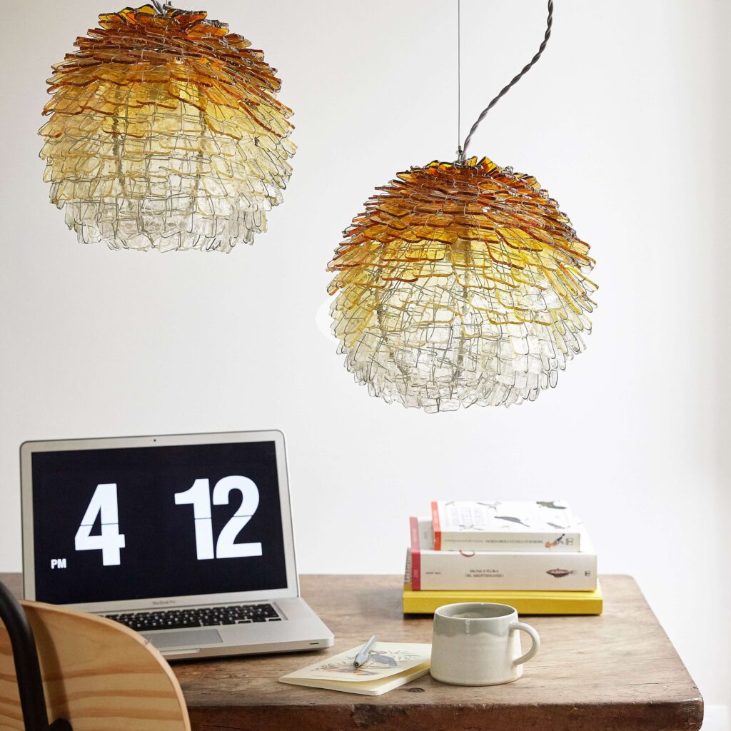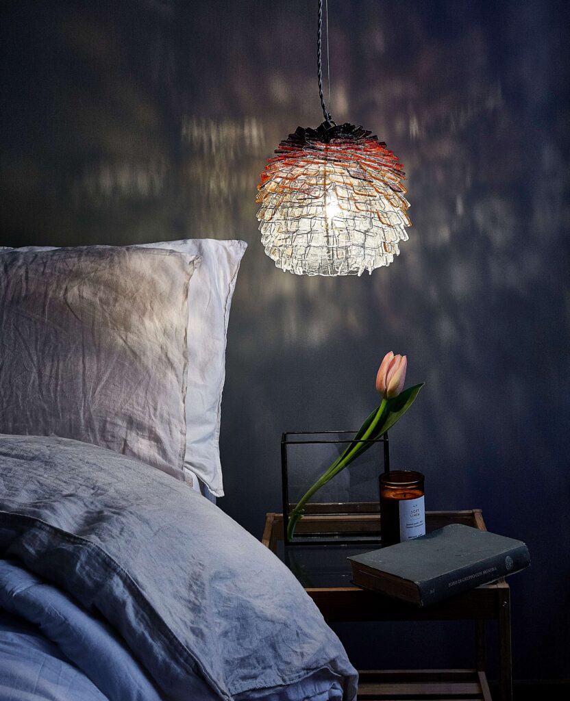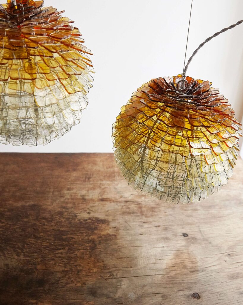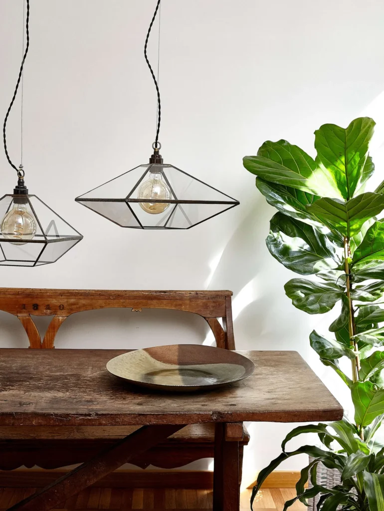 Ogni pezzo è realizzato a mano e pensato per creare atmosfera: non semplici corpi illuminanti, ma presenze che dialogano con lo spazio e con la luce che le attraversa.