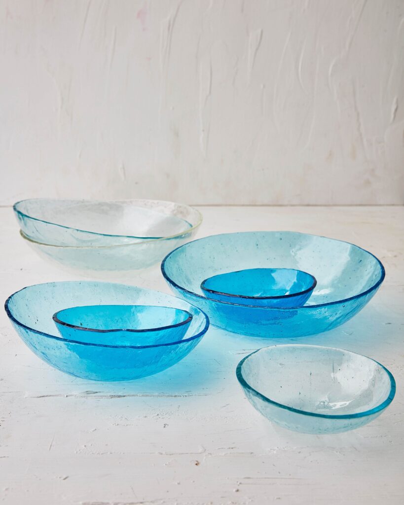 Ciotole, piatti, contenitori e piccoli oggetti in vetro: forme essenziali pensate per la tavola o per altri ambienti, funzionali e decorative al tempo stesso. Oggetti che restano nel tempo per la loro semplicità, solidità e armoniosità.