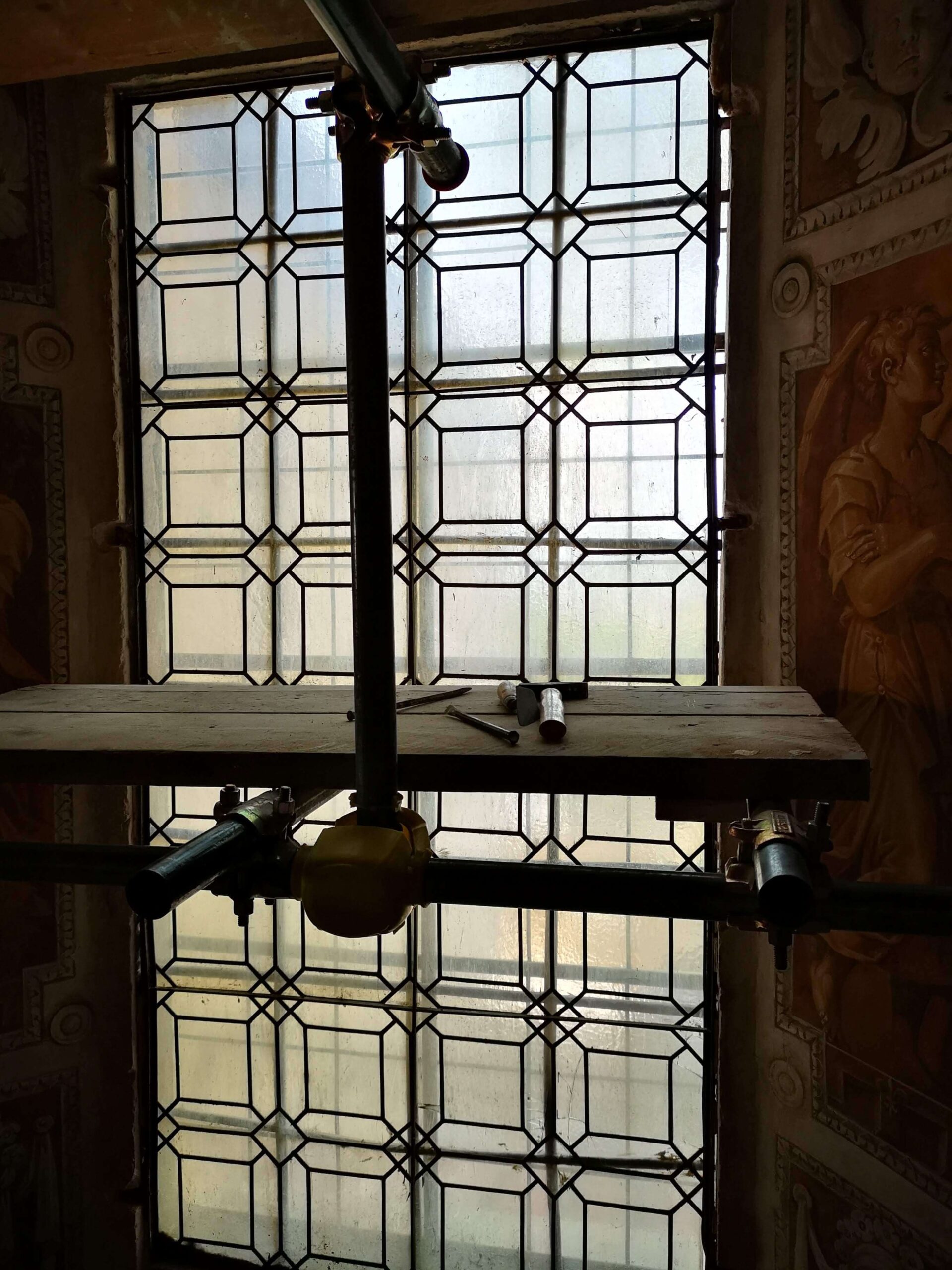 I piombi originali non presentavano criticità nella struttura pertanto sono stati mantenuti e consolidati con nuove saldature solo ove necessario.