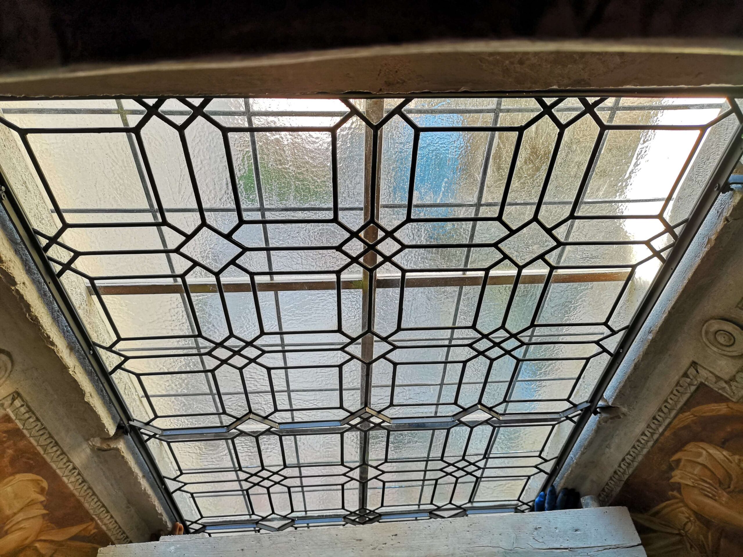 Infine, per conferire all’opera l’originale stabilità, la vetrata è stata interamente stuccata a pennello.