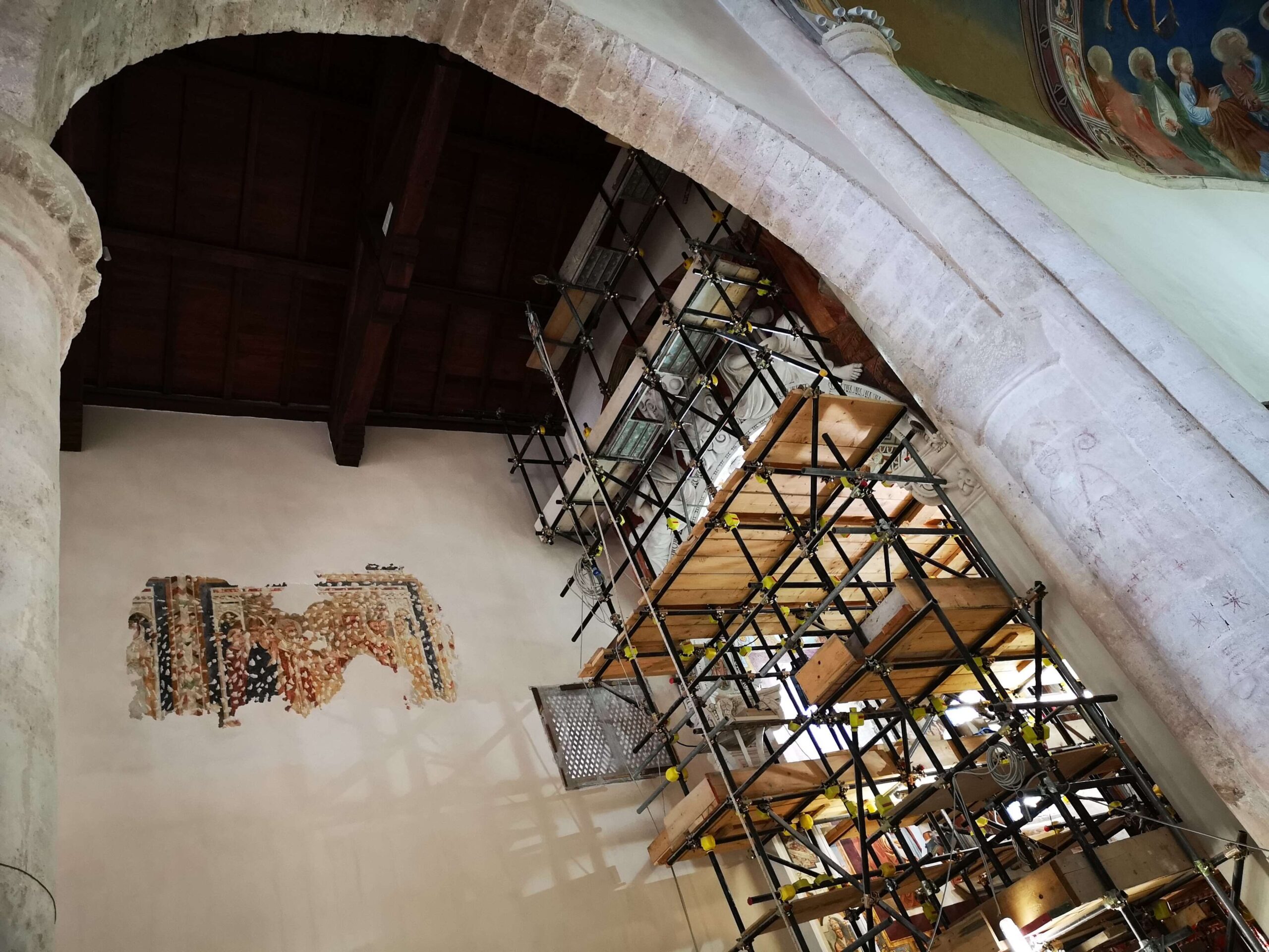 La raffinata luce di San Silvestro è tornata a splendere dopo il sisma del 2009, grazie ad un imponente intervento di restauro a cura del Ministero della Cultura.
