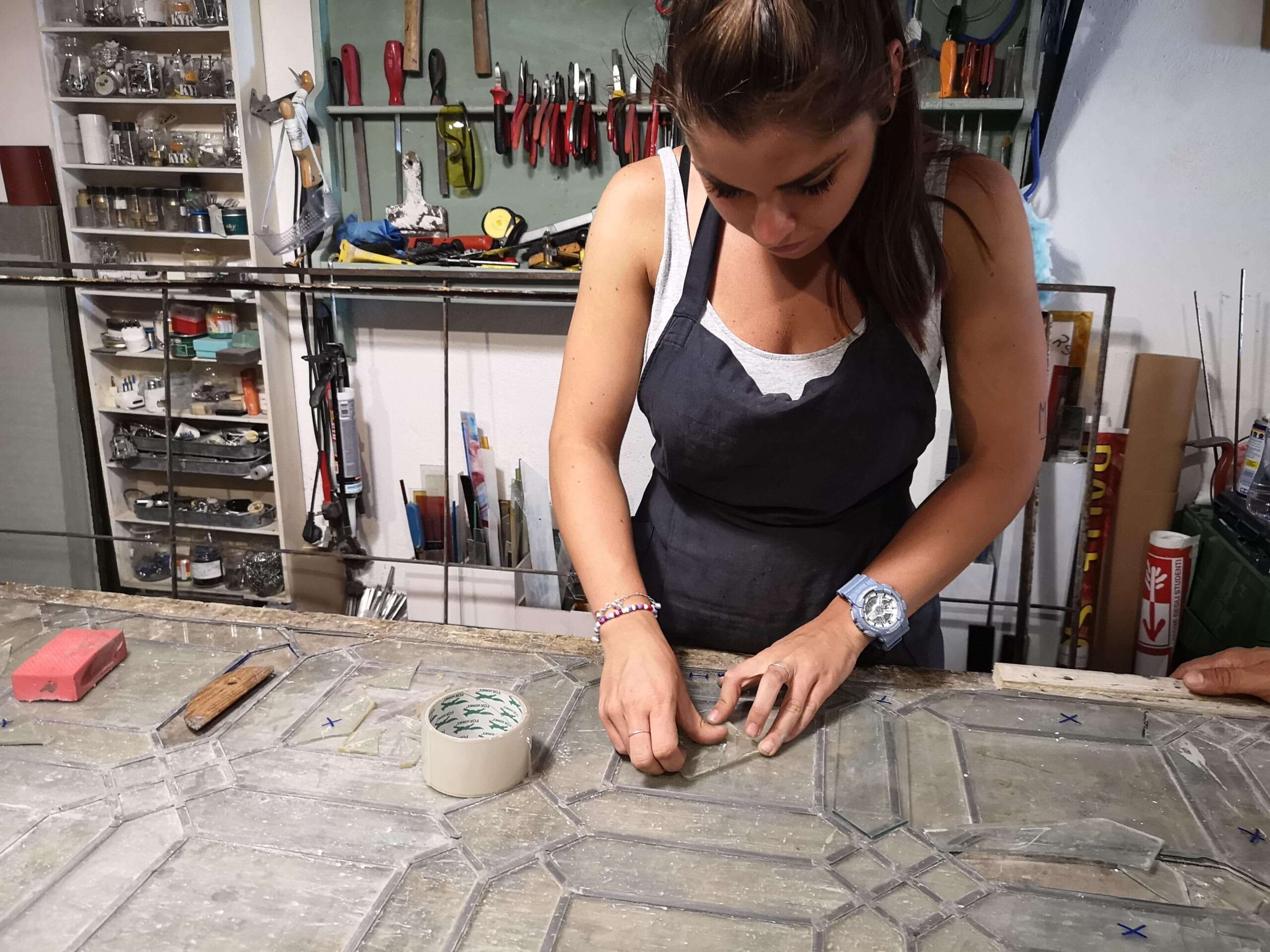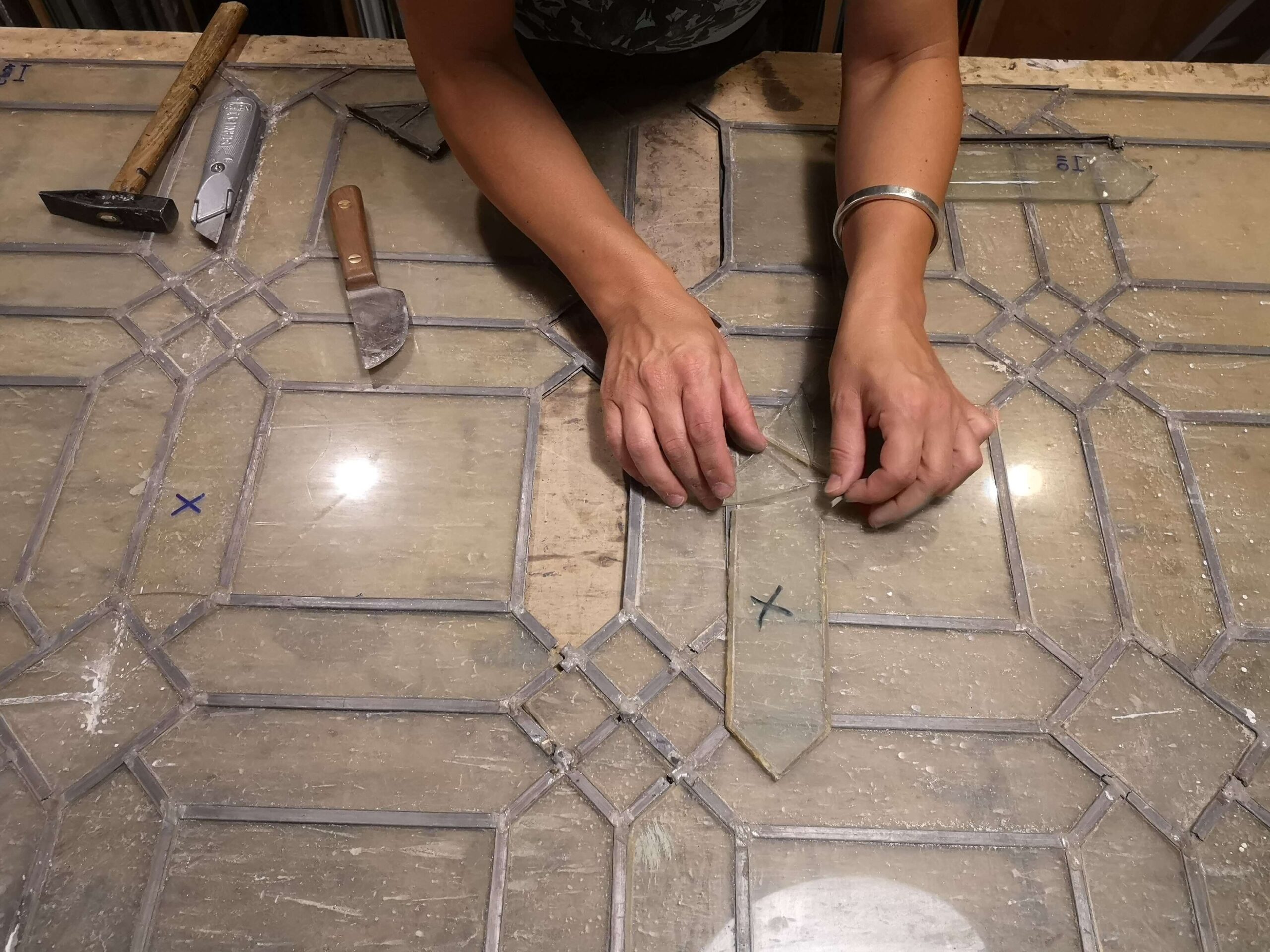 Successivamente è stato possibile procedere con lo smontaggio delle tessere rotte che sono statesostituite con un vetro estremamente simile all’originale.
