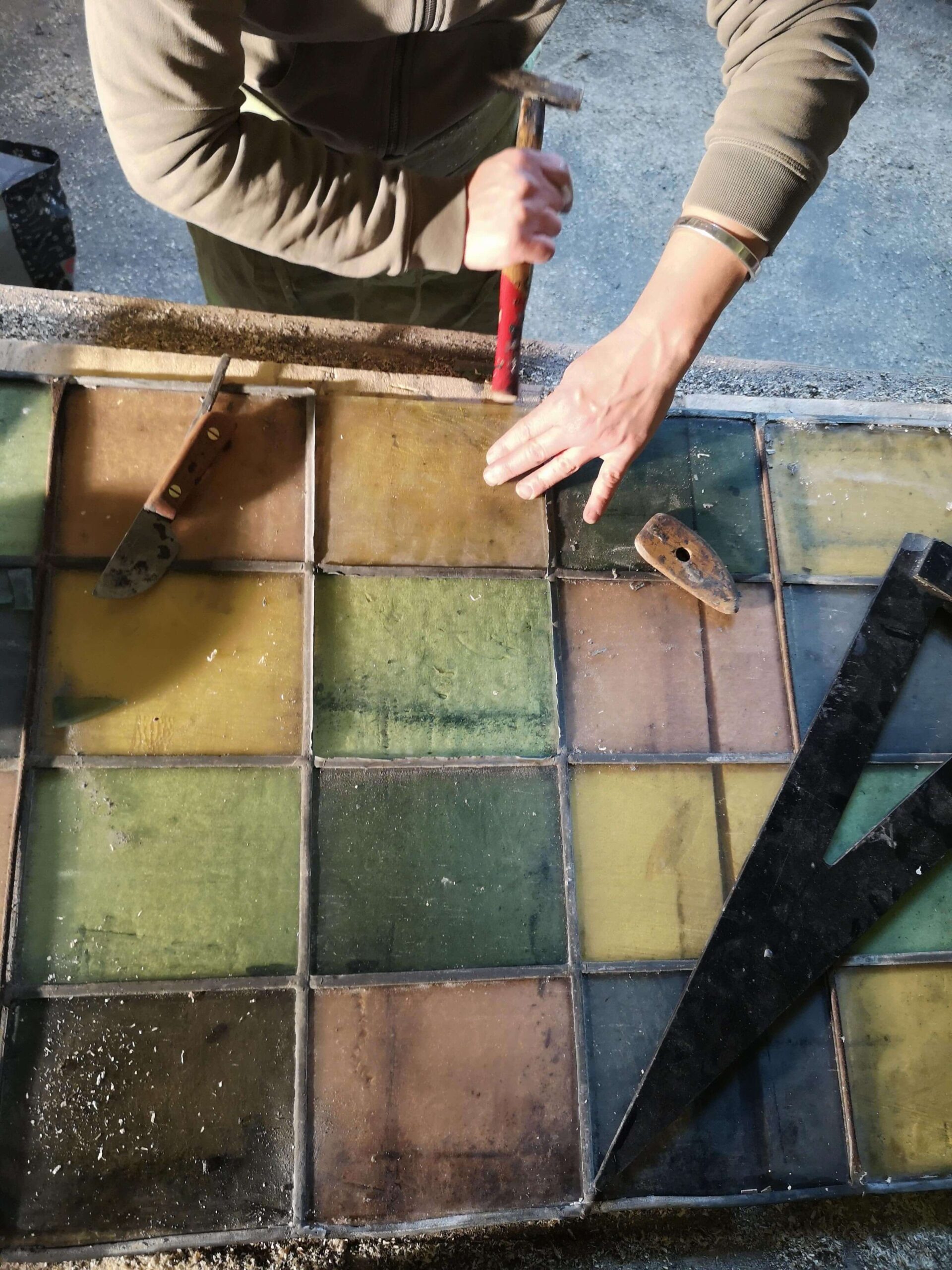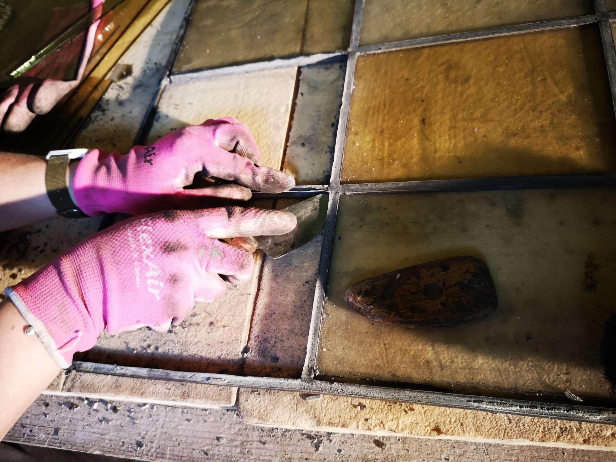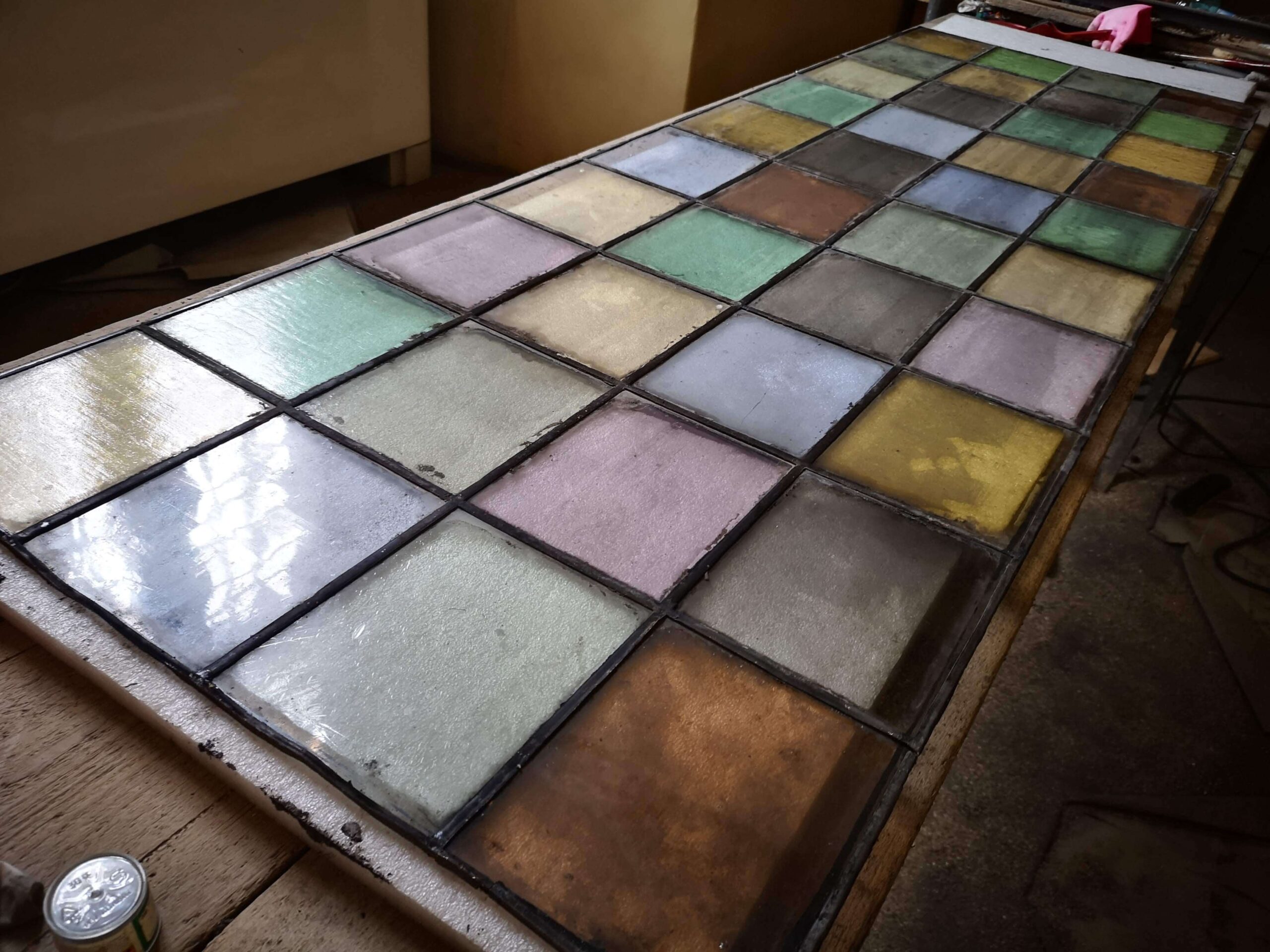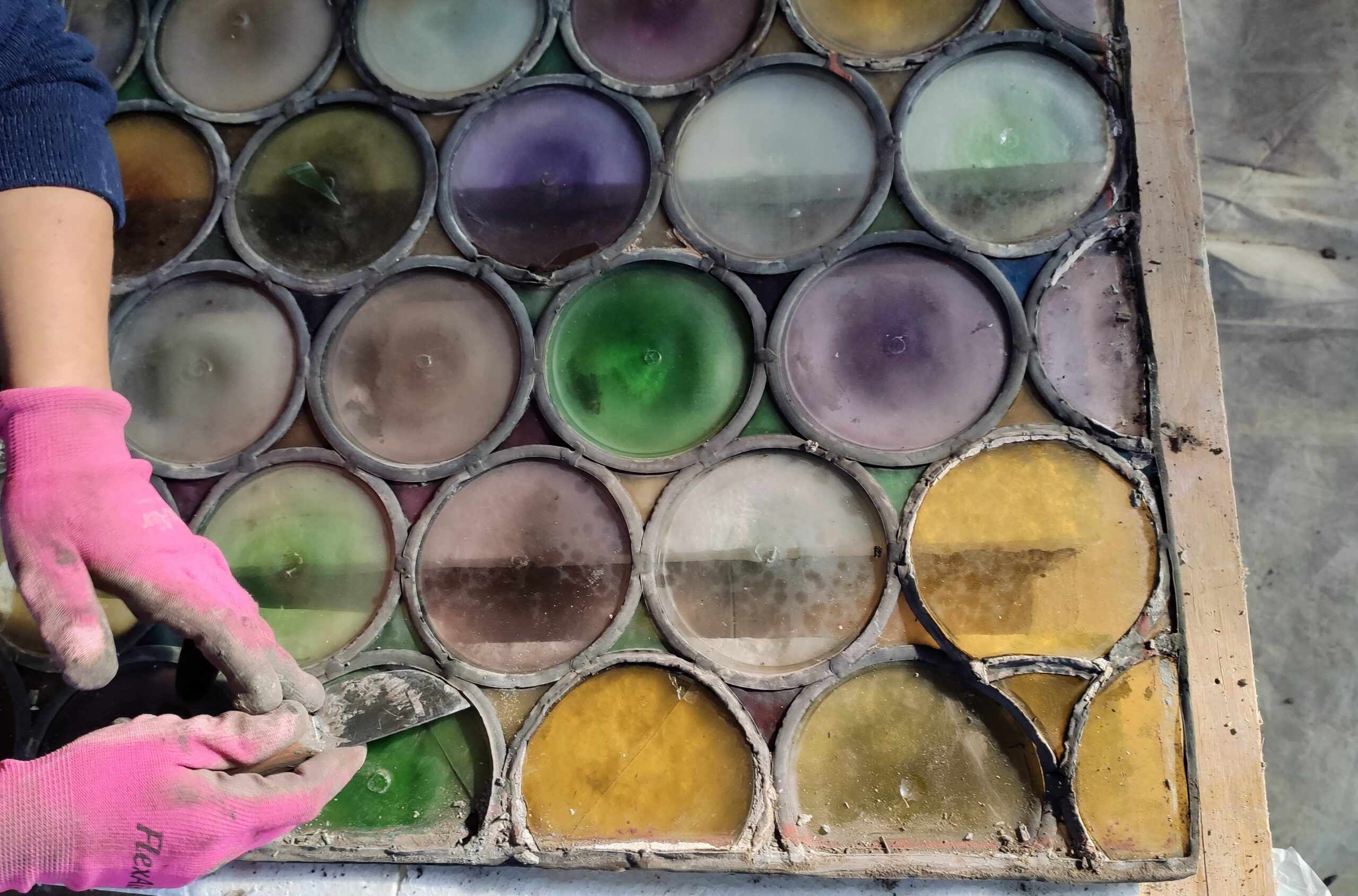 Mantenendo i piombi originali e consolidandoli ove necessario, con nuove saldature, le vetrate sono state successivamente stuccate a pennello come da tradizione.