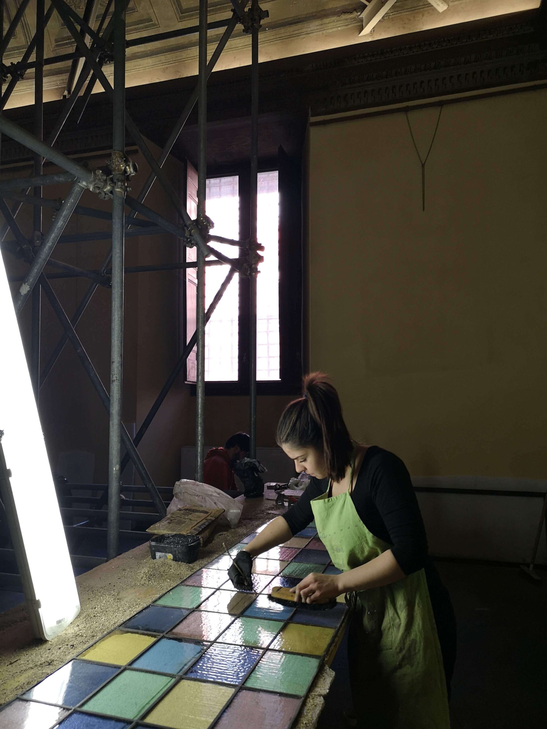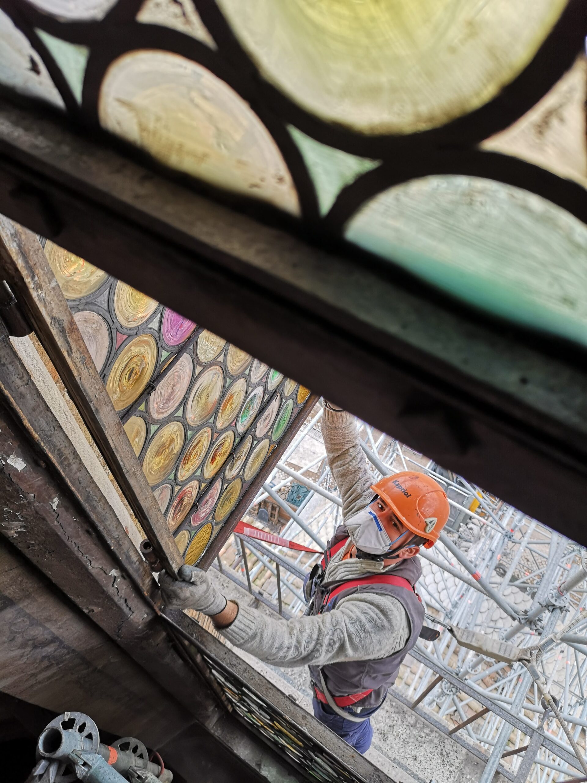 L’operazione accurata ha riportato i vetri all’originaria lucentezza, ricreando gli effetti cromatici di un tempo.