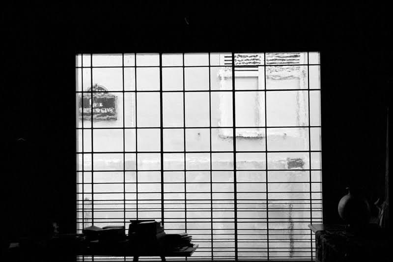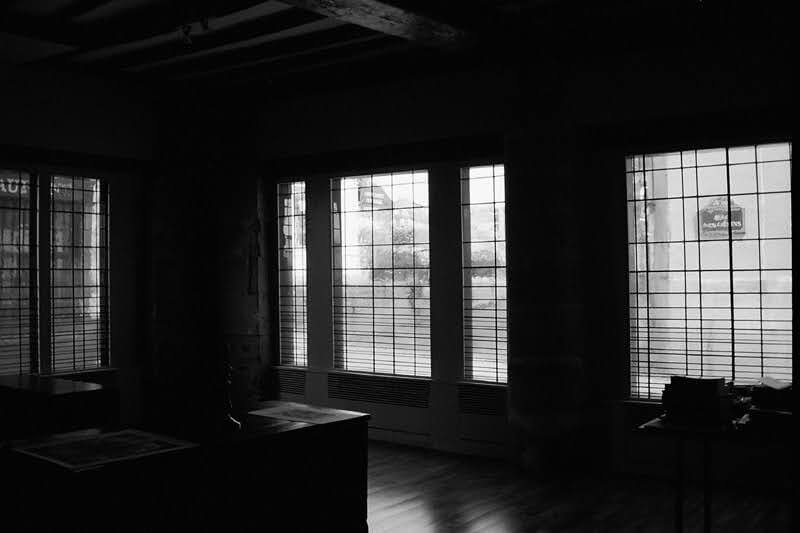 La texture dei vetri soffiati con bollatura a intensità crescente e le linee a distanza graduale, garantiscono la privacy nella parte inferiore, mentre quella superiore apre lo sguardo verso l’esterno, con vista sull’architettura contemporanea del Centre Pompidou.