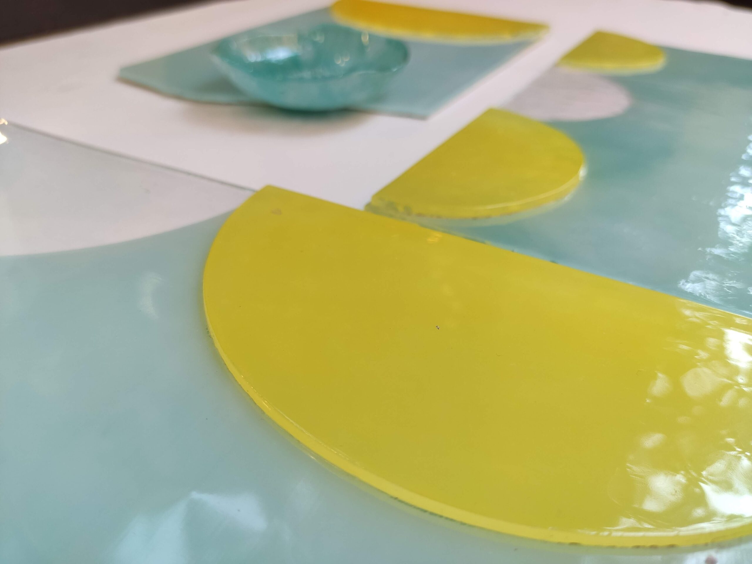 Gli inserti giallo limone sono in rilievo, creando un effetto tridimensionale.